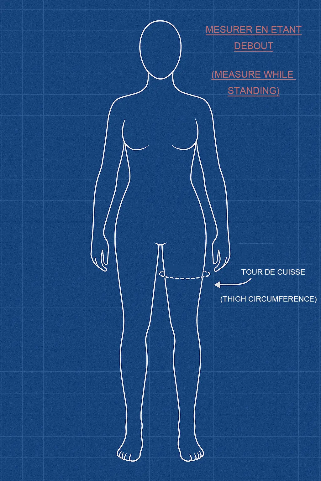 1) Lors de la commande, merci d'indiquer la longueur souhaitée en remplissant la case « Tour de cuisse » (en précisant en centimètres ou en inch).